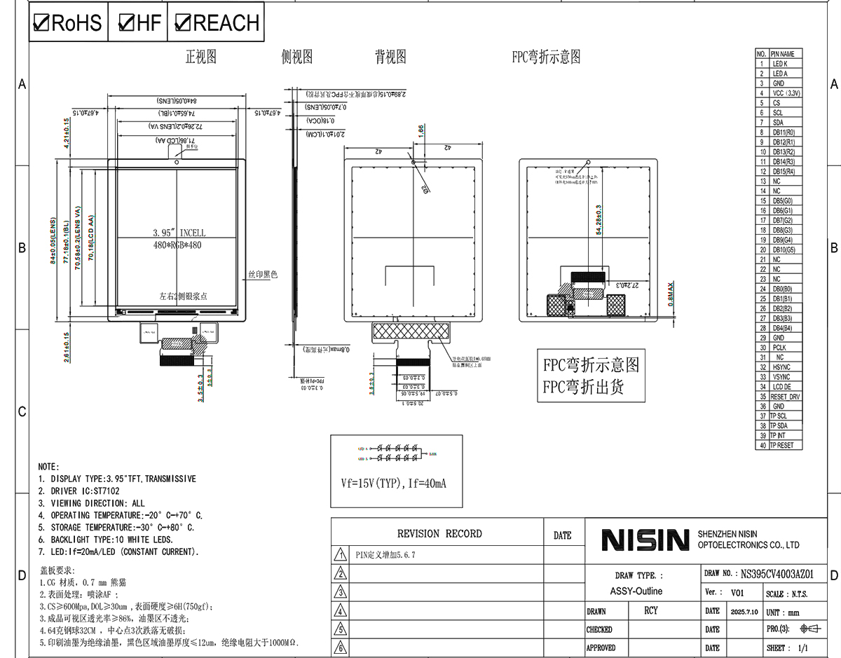 | LCM外形尺寸 | 74.65*77.18*2.01mm | |