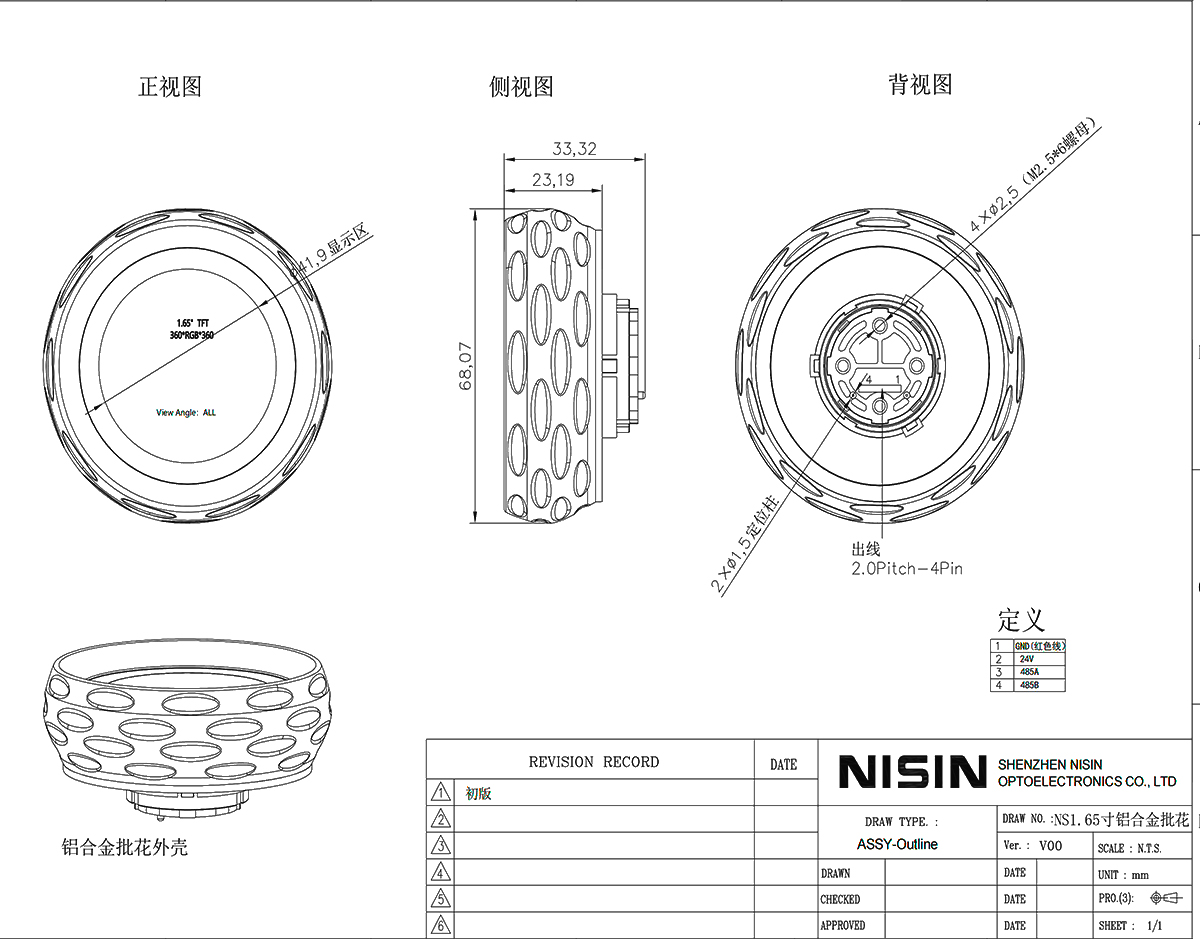 | 1.65寸 360*360 全金属高端定制旋钮屏 | 尺寸 | 1.65寸 TFT |