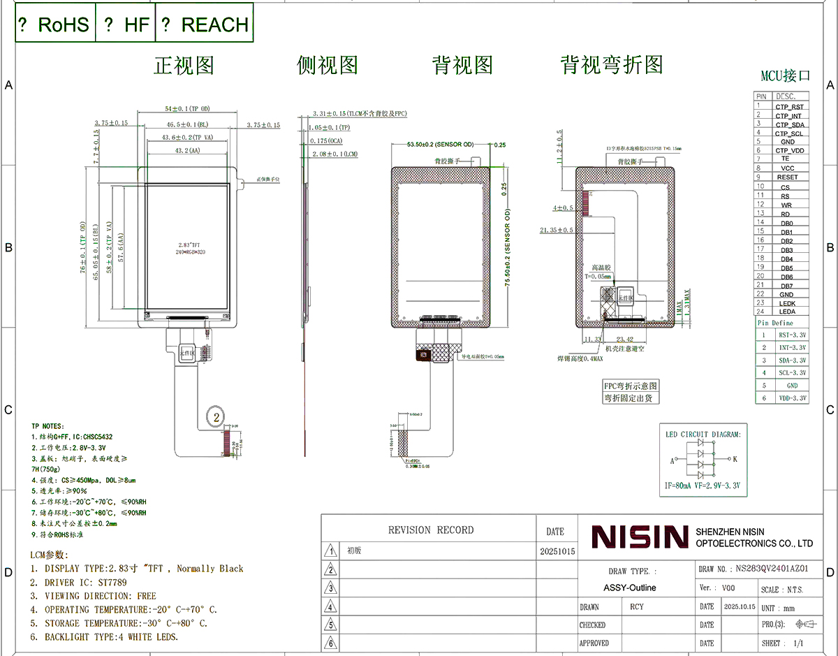 | 2.83寸 240*320 外挂触摸总成 | 分辨率 | 240*320 |